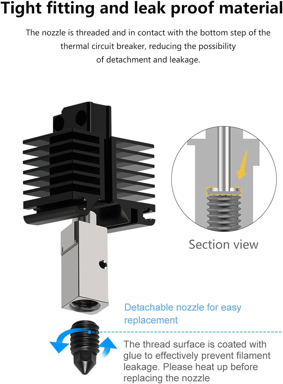 Дизайн с висок поток: За Bambu Lap X1C/P1P дюзата с висок дебит на горещия край използва структура, проектирана специално за приложения с висок дебит, която може да осигури голямо количество течност или поток.