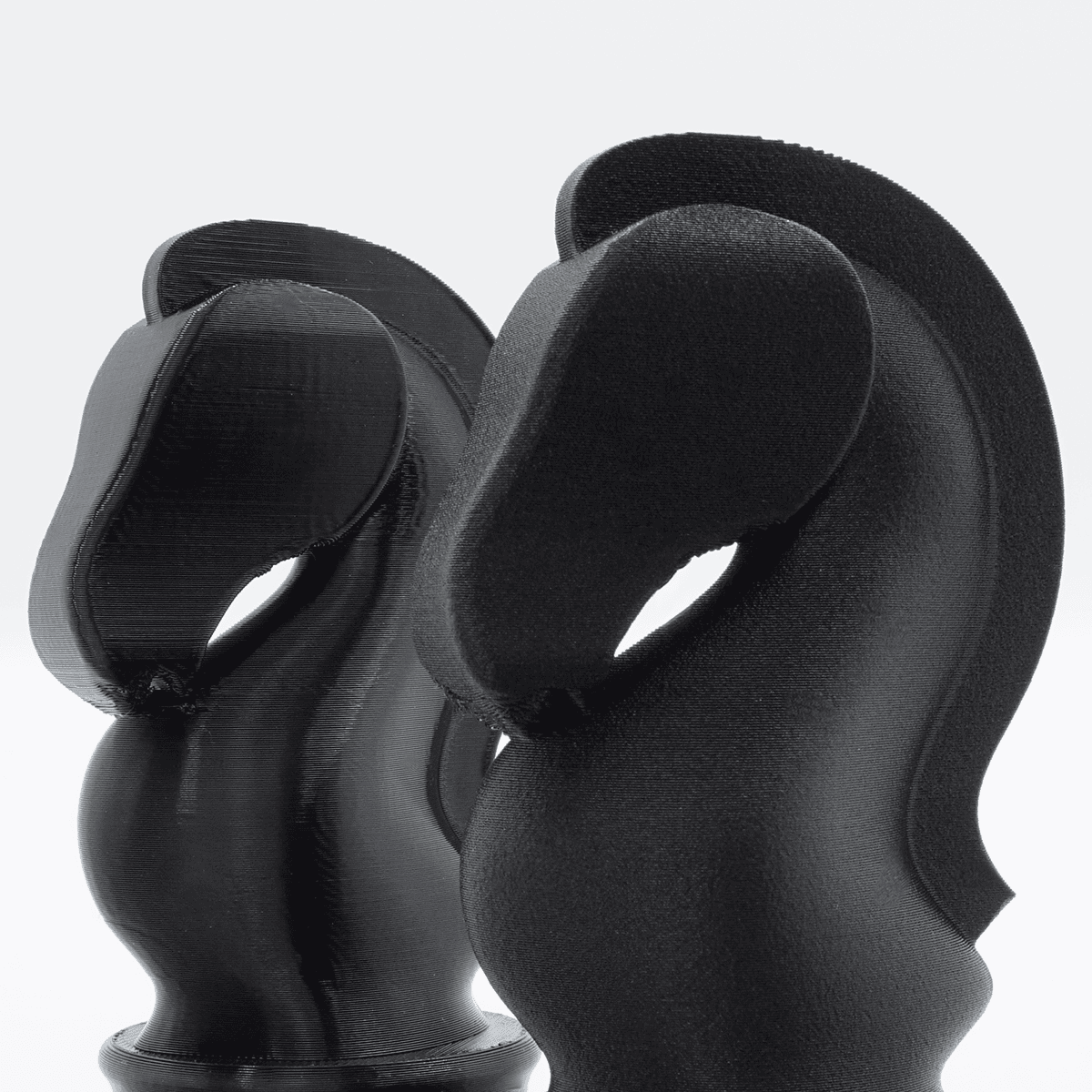 Matte PET-G филамент е нов продукт в листата на Fiberlogy. Това е отговорът на многобройни искания от ентусиасти на 3D принтирането. Този модерен PET-G филамент се характеризира с уникално матово покритие. Той не само придава на детайлите изискан вид, но също така ефективно маскира слоевете, подобрявайки естетиката на крайния продукт. В сравнение с матовите PLA филаменти, Matte PET-G предлага много по-голяма здравина. В резултат на това позволява създаване на солидни и издръжливи детайли с елегантен външен вид. Той е идеален за дизайни, при които естетиката е толкова важна, колкото и здравината на нишката. Matte PET-G е лесен за работа, но за да се използва напълно потенциалът му, той изисква по-високи температури на печат – между 260 и 280°C, особено за високоскоростен печат, например с принтери на BambuLab. Това са ключови параметри за осигуряване на оптимална здравина и отлично свързване на слоевете. За най-добри резултати препоръчваме да увеличите броя на контурите и запълванията.