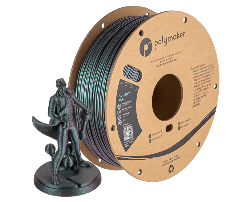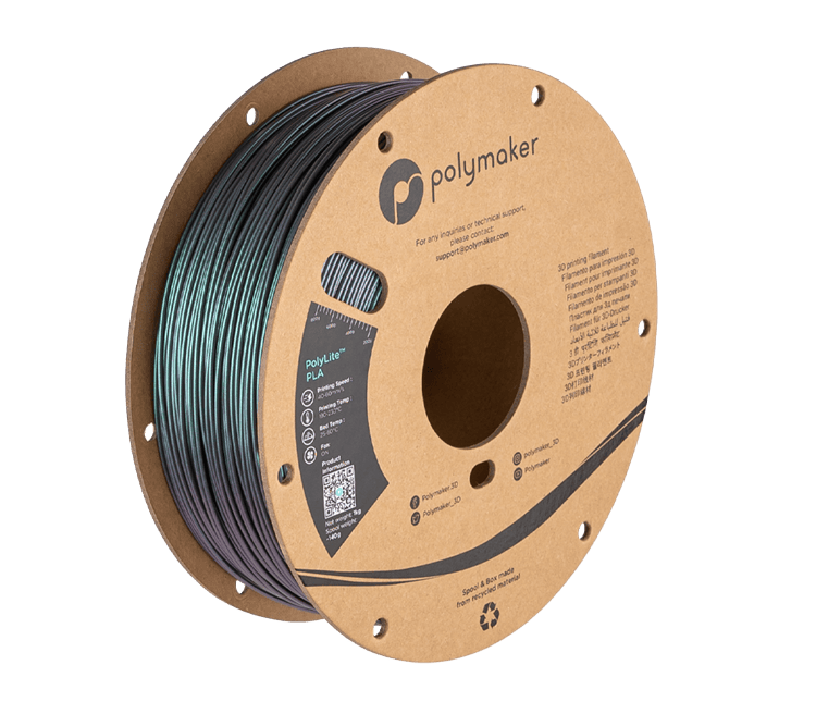 Polymaker PolyLite™ PLA Starlight-серия е колекция от висококачествени PLA нишки, всяка от които има уникален блестящ преливащ блясък.
