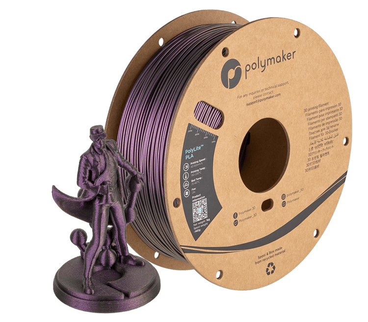 Polymaker PolyLite™ PLA Starlight-серия е колекция от висококачествени PLA нишки, всяка от които има уникален блестящ преливащ блясък.