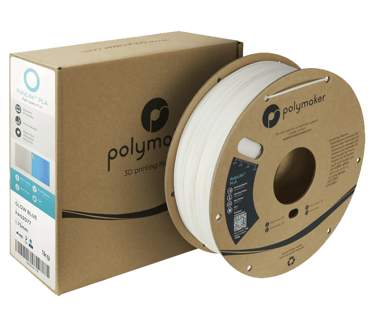 PolyLite™ Glow in the dark PLA е PLA материал със специален ефект, предназначен за отпечатване на забавни и светещи 3D отпечатъци. Светещите в тъмното PLA материали предлагат подобна съвместимост с принтерите, но изискват допълнителни съображения за отпечатване, като например използване на дюза от закалена стомана, за да се предотврати прекомерното износване на принтера.