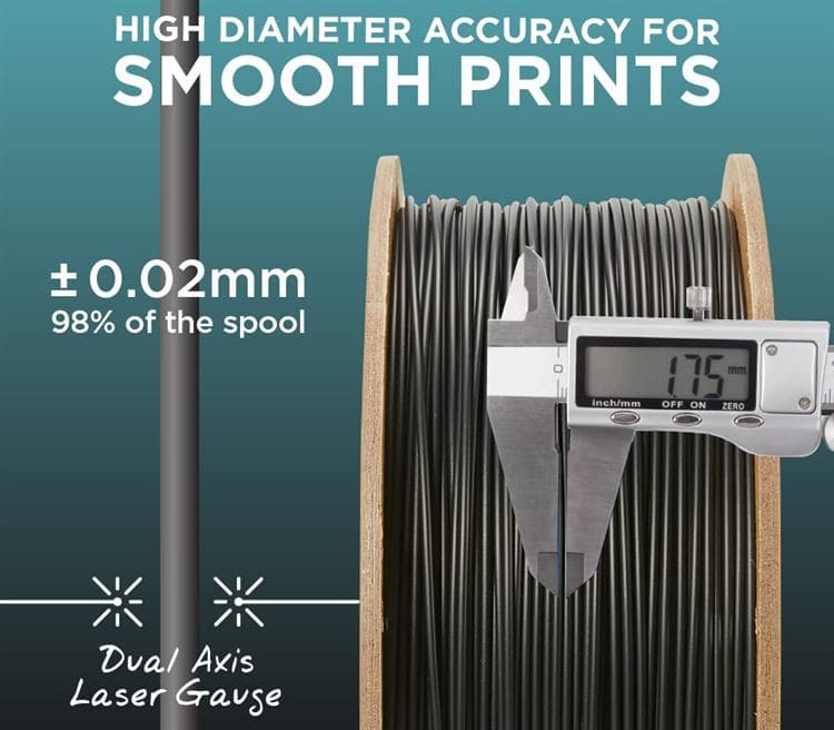 • Постоянен цвят и толеранс (диаметър 1,75 мм +/- 0,03 мм)