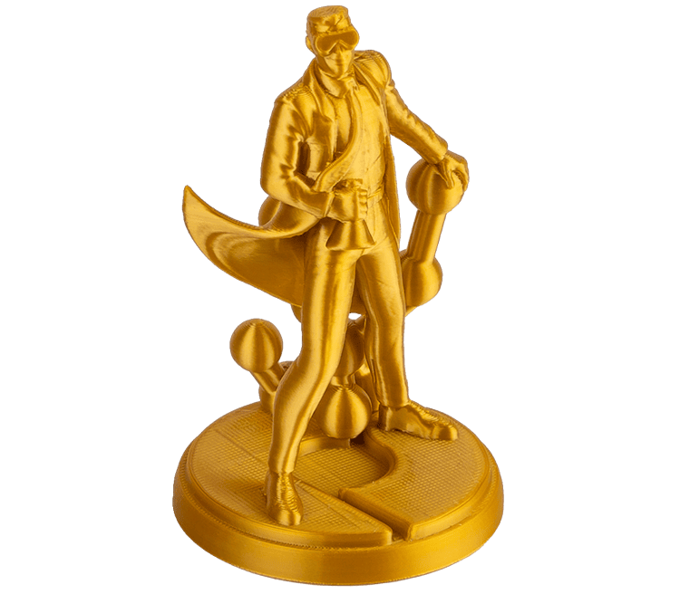 Копринена повърхност – PolyLite™ PLA Silk е разработен, за да придаде на частите невероятна лъскава повърхност, подобна на коприна, без да е необходима допълнителна обработка. Уникалното му повърхностно покритие го прави атрактивен избор за открояващи се модели на дисплеи или естетически приложения, които изискват ярко или метално повърхностно покритие.