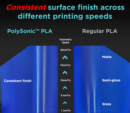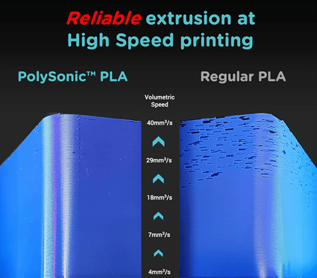 Освен това високоскоростният филамент ще екструдира много по-последователно в рамките на диапазона на скоростта, осигурявайки гладка повърхност, докато обикновеният филамент ще показва дупки, артефакти и слоеве с различна дебелина.