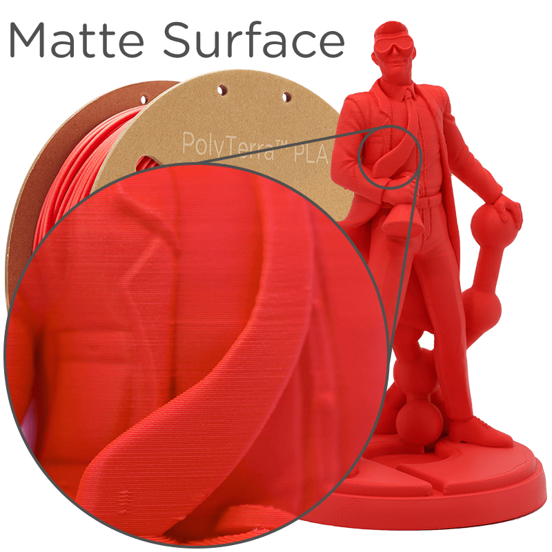 Отличаващ се с широк температурен диапазон на печат от 190-230°C, PolyTerra™ . Mоже да се включи и да работи на всеки 3D принтер, базиран на екструзия. Повърхностният завършек на 3D отпечатаните детайли е уникално матов, което скрива линиите на слоевете, дори при печат с голяма височина на слоя.